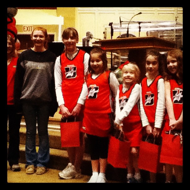 and then made our way home for lunch, after which I spent the afternoon downtown at the expo centers' flea market with a friend, and Ryan and the kids went to another friends' house to help with some new furniture and to shoot some more hoops. (It was back to warmer, spring weather Saturday!) Then we were due back for Savannah's last basketball/cheer game and their awards/end of the season celebration with pizza as well...